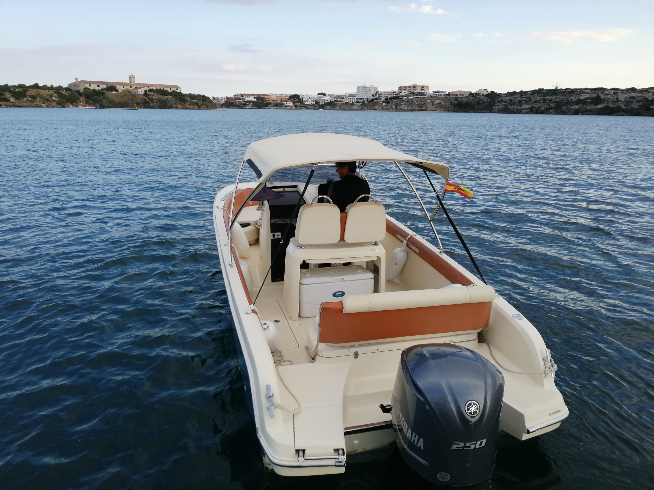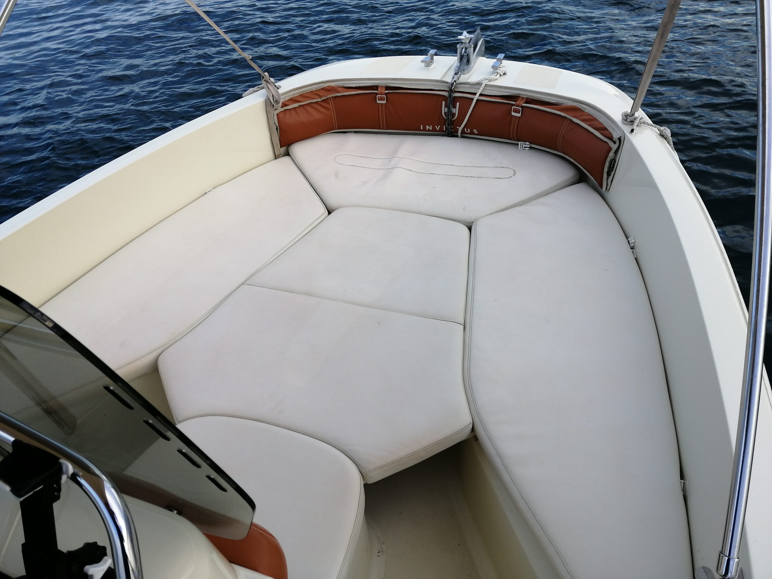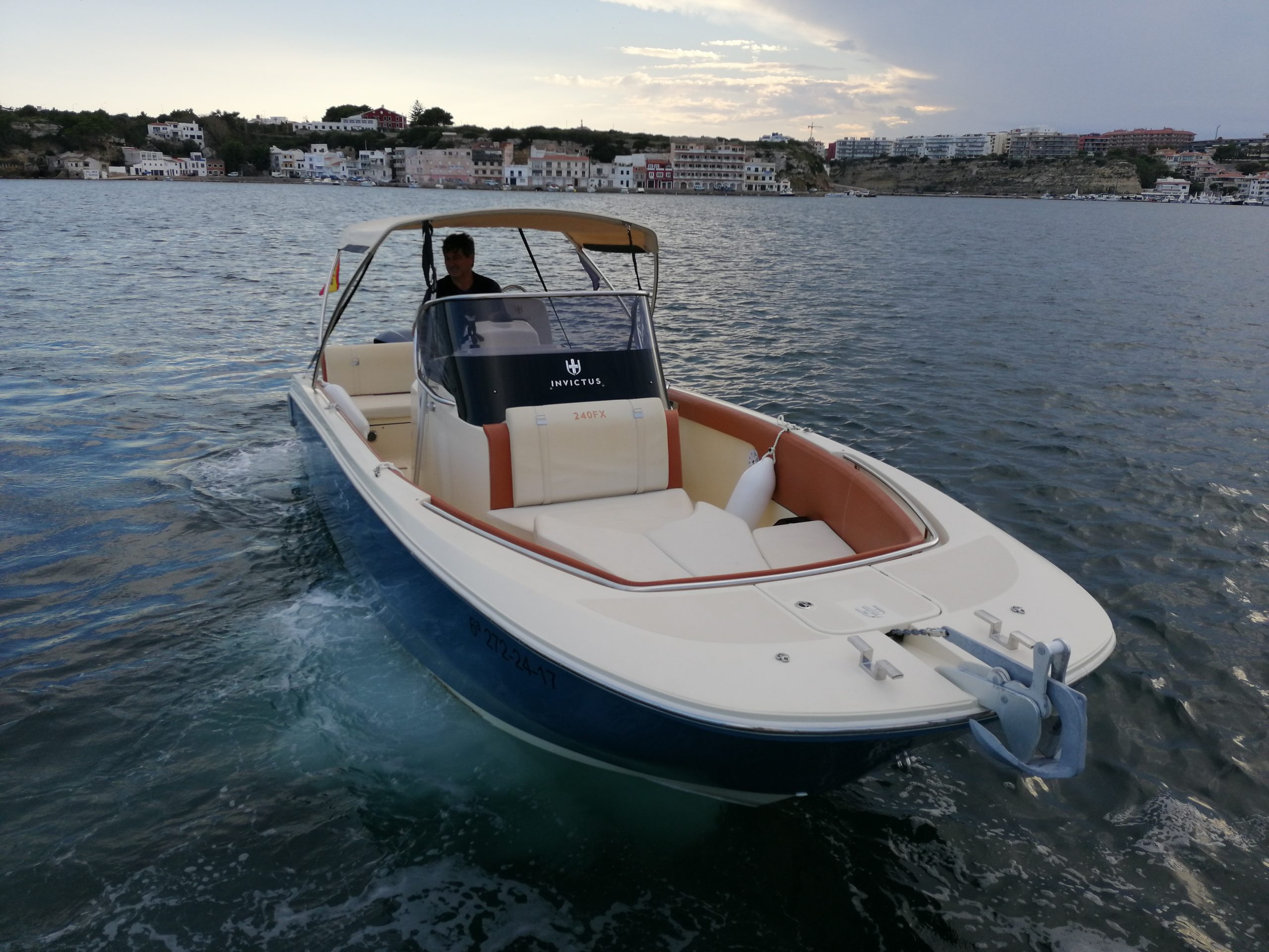 Embarcación muy bonita, llama la atención y además es espaciosa, rápida y cómoda, navegando a alta velocidad, ésta lancha en una de las más estables que se han diseñado nunca, con una relación consumo-velocidad óptima. Dispone de un sofá en la popa. Los asientos del piloto y acompañante se abaten hacia adelante para acceder a la cocina. A proa dispone de un solárium para poder Tumbarse/sentarse varias personas. La zona de proa tiene un cómodo sofá, la consola del Invictus está perfectamente acabada, incluso en los detalles más pequeños, que están completamente integrados. Los volúmenes se utilizan para ganar un pequeño vestidor en la cubierta inferior.La Invictus 240 FX es una embarcación en la que se han cuidado todos los detalles, y salta a la vista solo con subirse a bordo..El modelo 240 FX de Invictus tiene un casco de gran rendimiento con una eslora de 7,45 m. y una capacidad para 10 personas, es un gran barco tanto en términos de detalles y equipamiento como en calidad de los materiales. El tamaño no compromete la elegancia de la embarcación.