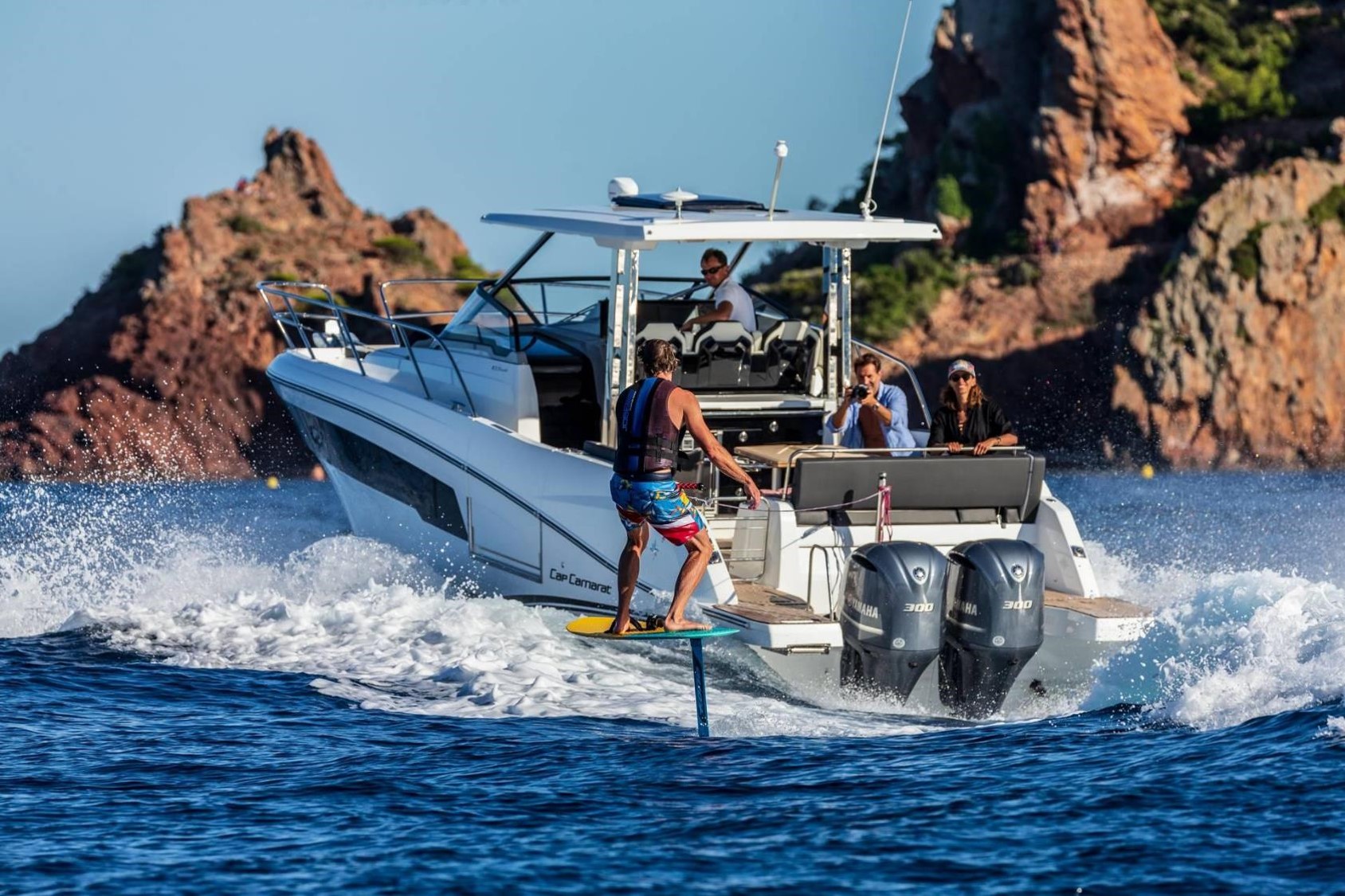 La Cap Camarat 10.5 WA Series2 invita a prolongar las escalas en el agua con la mayor comodidad. El T-top opcional, perfectamente integrado en la línea de la embarcación, permite, gracias a la ayuda de un toldo adicional, comer a la sombra. El leaning post, apoyado contra los asientos de la cabina, da acceso a numerosos equipos: parrilla, cocina de gas, almacenamiento, refrigerador o incluso un vivero para conservar el fruto de tu pesca. El interior, espacioso y confortable, ofrece un segundo camarote independiente en popa. Esta Day Boat lo tiene todo para darte el gusto por los cruceros y las noches en el mar.