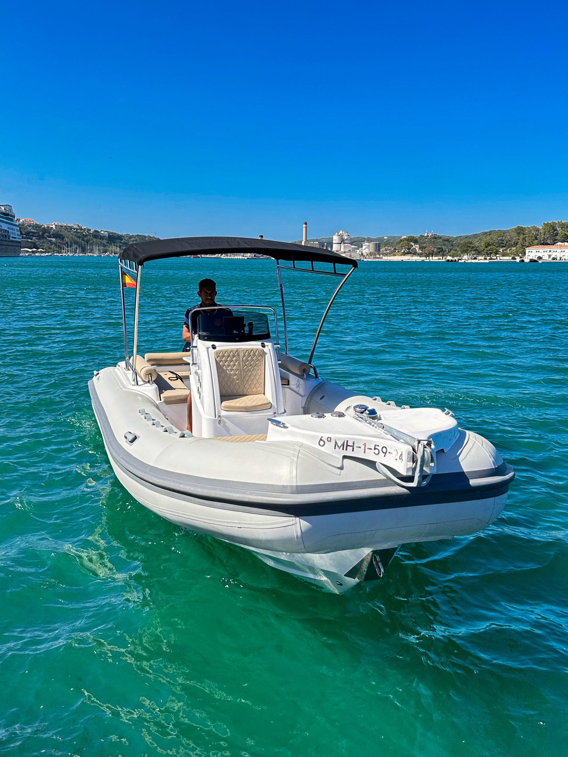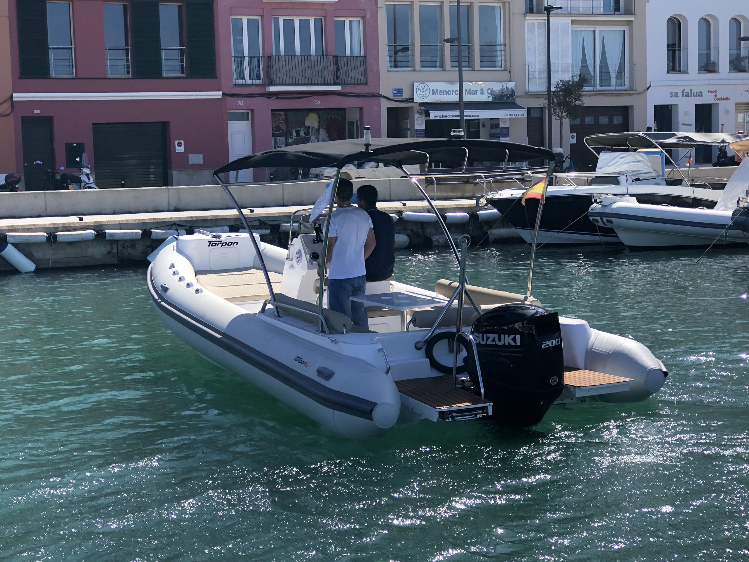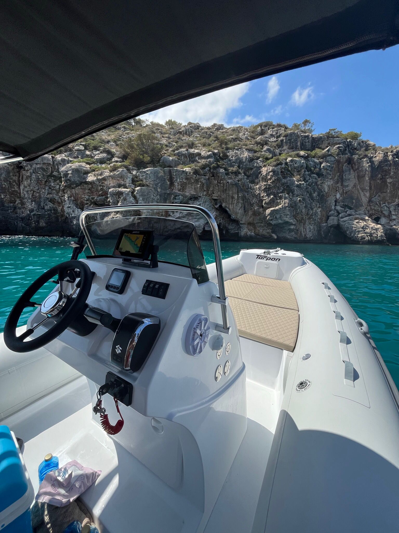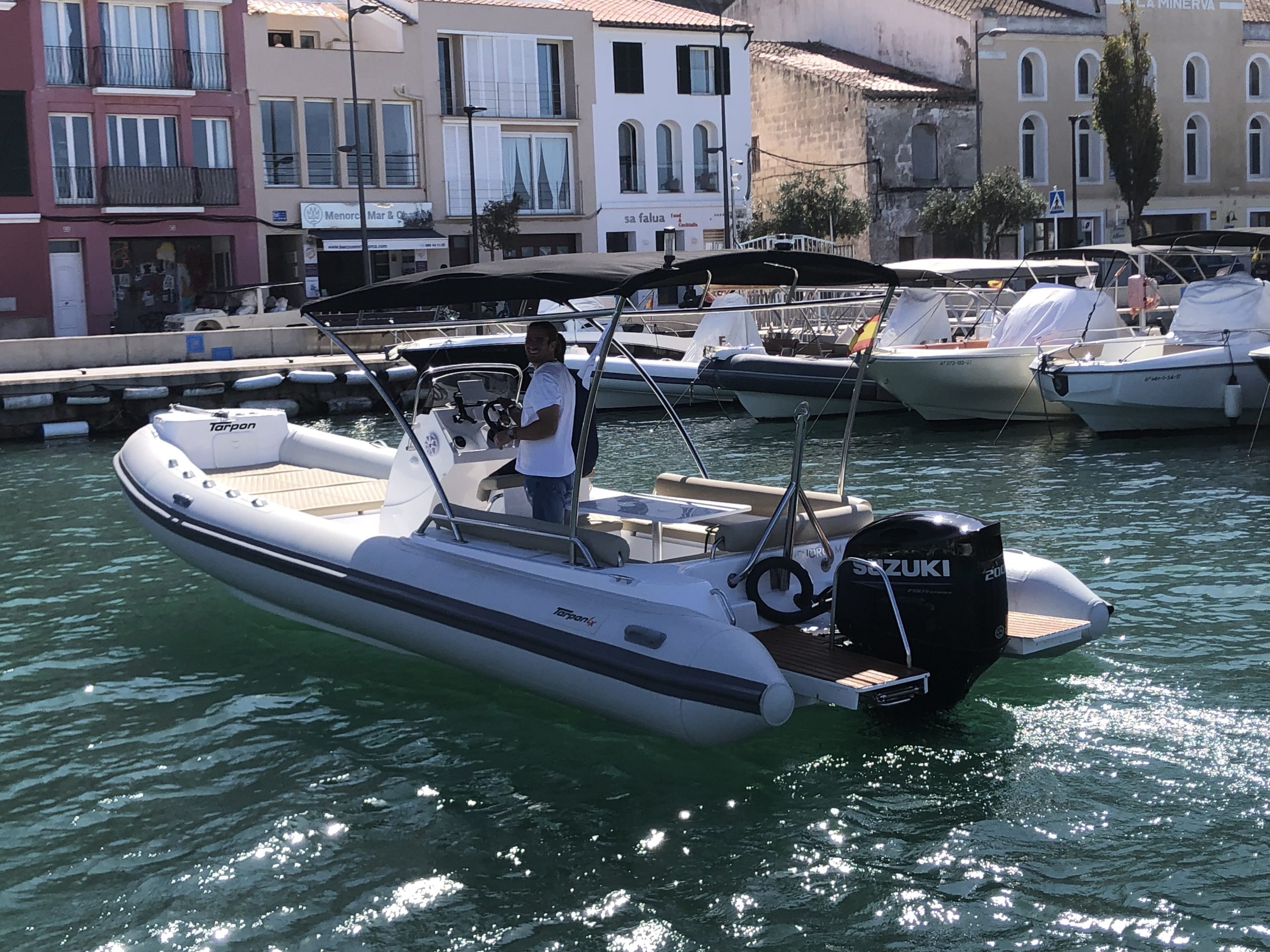 Si estas pensando en comprar una semirrígida de 10 metros con dos motores y cabinada esta NUEVA TARPON 1000 Ccon dos motores es la mejor semirrigida del mercado. El motor Suzuki DF 200 cv., posiblemente el mejor de Suzuki en cuanto a la relacion de potencia/rendimiento/consumo permiten navegar con un mínimo consumo de combustible. La potencia de 2×200 cv permite navegar de forma rápida, ya la vez con un consumo muy reducido comportamiento extraordinario. Además de alcanzar la velocidad de planeo rápidamente y alcanzar mucha velocidad, se comporta fenomenalmente, tanto en giros cerrados como a medio gas sobre las olas. La proa es afilada, es suave y evita el pantoqueo.TARPON 1000 Cabinada trae un un gran solárium de proa 1 metro adicional a la 790, un metro adicional de playa en la popa y 30 cm adicionales de manga, manteniendo la mesa en popa para 8 personas que se convierte en solarium extendido. La zona de popa también se puede convertir en un segundo solárium ajustando la altura de la mesa.En la popa, con un metro de plataforma de baño entre el motor y el barco con dos plataformas laterales adicionales, ducha y escalera; la zona de la bañera, con un sofá envolvente en U, en torno a una mesa que se puede ajustar en altura para formar un espacioso solárium detrás, complementado por un mueble en la zona central con el puesto de gobierno y la proa con el solárium principal. La plataforma adicionales en popa de 1 metro te permite disfrutar como un intraborda. Es destacable la capacidad de estiba en proa y popa, grandes cofres, con una distribución muy equilibrada, aprovechada, hecha para navegar cómodamente a bordo.El puesto de gobierno es cómodo, seguro y ofrece buena protección y ergonomía. La cabina con baño te permite dormir, estibar, sin quitar espacio del solarium gracias a la consola con solo 1,2 m de alta. Esta es una novedad nunca antes visto en una semirrigida . Ante el volante vamos cómodos, tanto de pie como apoyados en el banco con reposapiés y con un panel de control con todos los indicadores. El balón es de material PVC especial que no coge hongos. Sorprende el precio de salida de 120 000 euros incluidos los dos motores, para las primeras 10 unidades