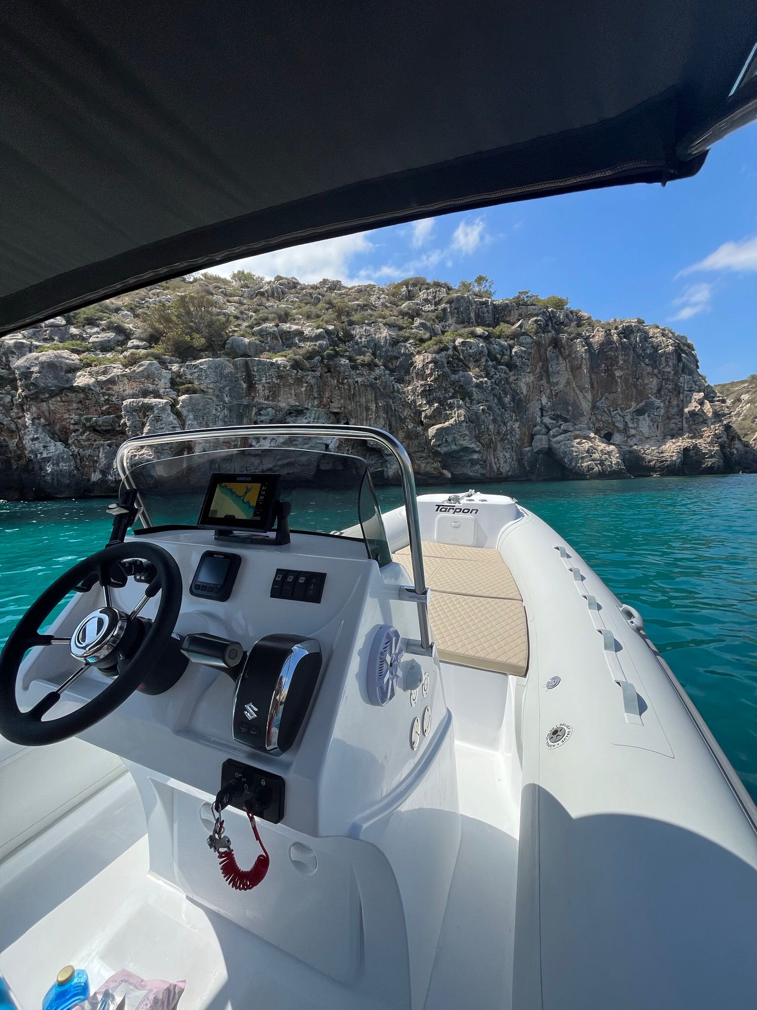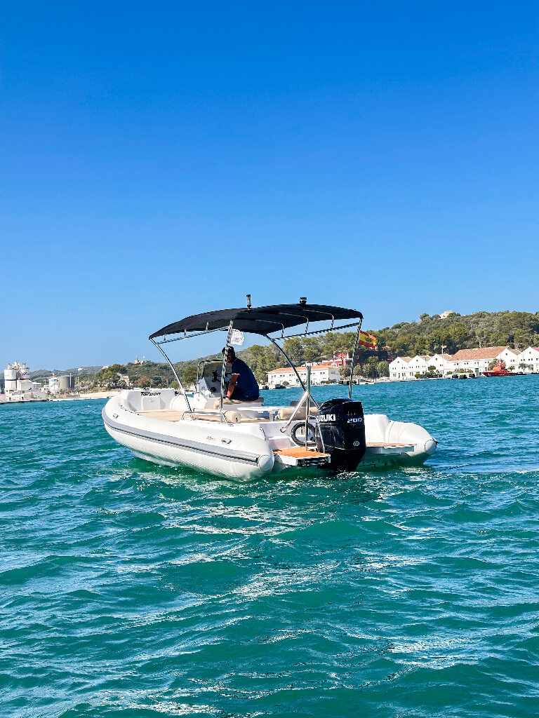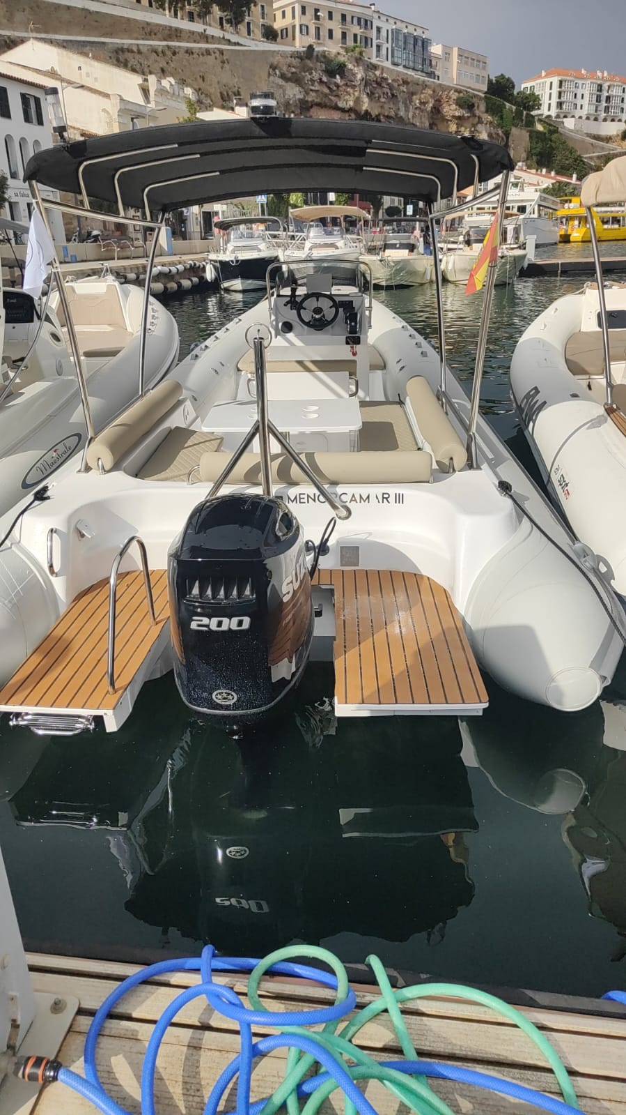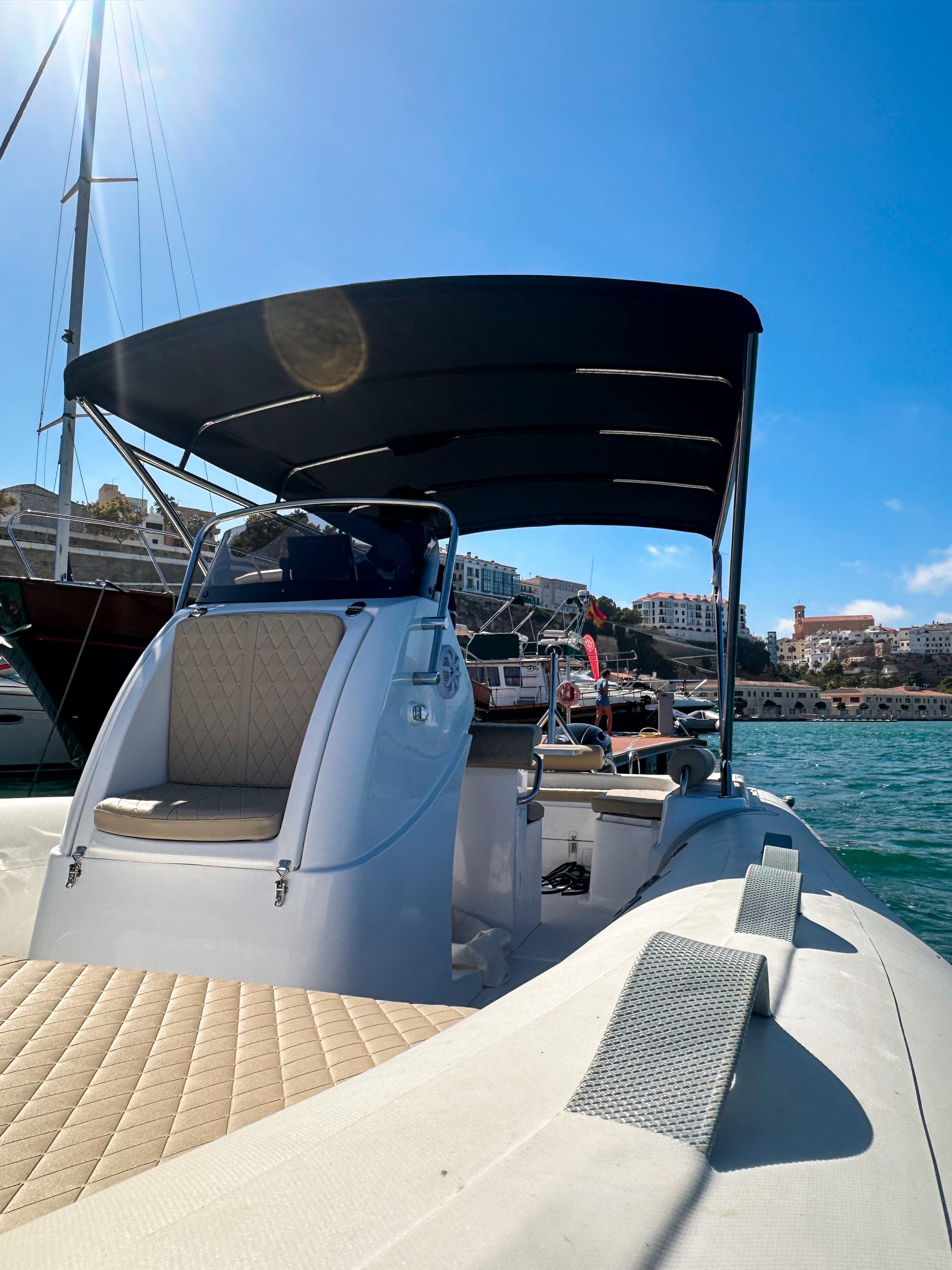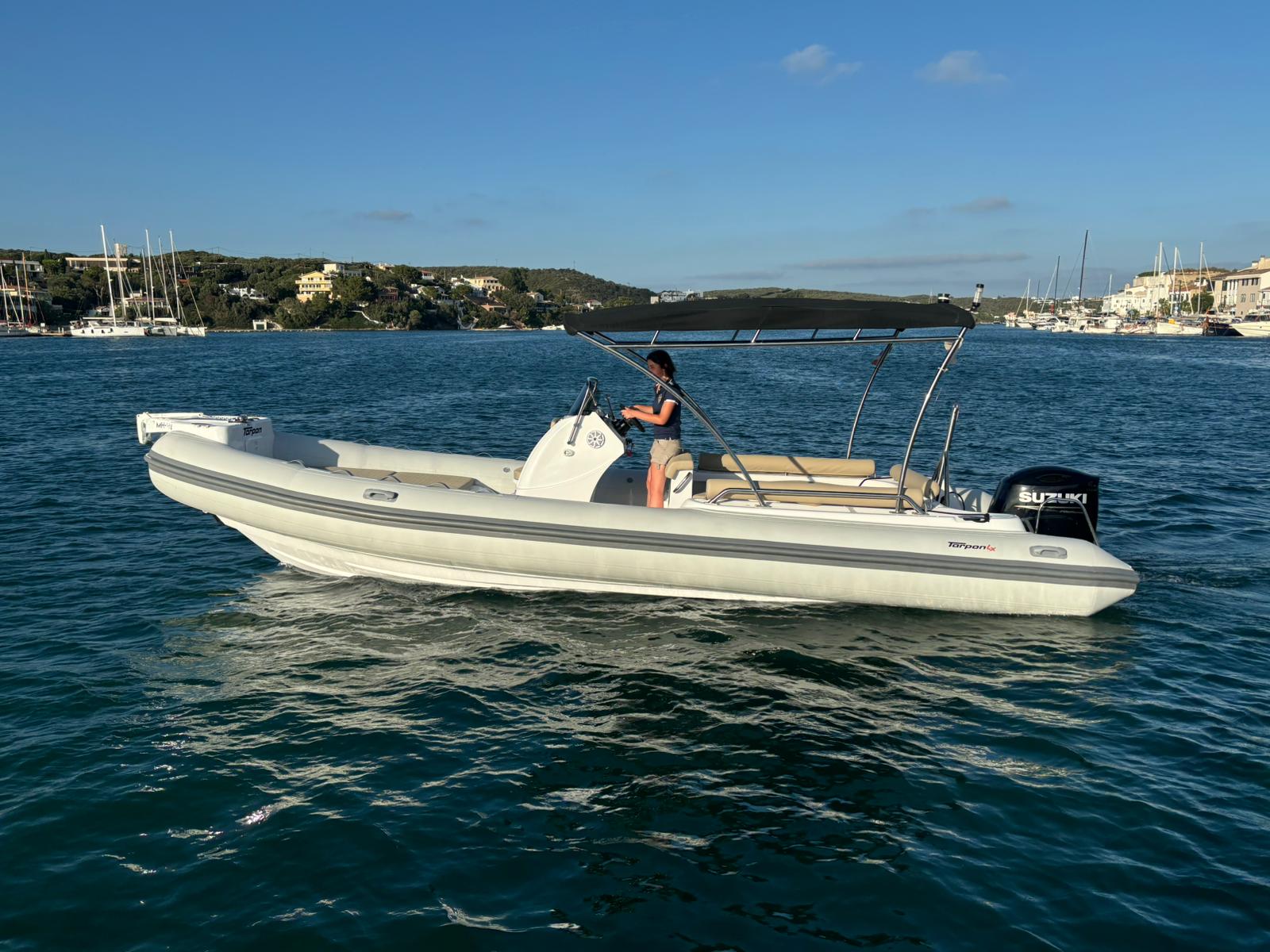 Si estas pensando en comprar una semirrígida de 10 metros con dos motores y cabinada esta NUEVA TARPON 1000 Ccon dos motores es la mejor semirrigida del mercado. El motor Suzuki DF 200 cv., posiblemente el mejor de Suzuki en cuanto a la relacion de potencia/rendimiento/consumo permiten navegar con un mínimo consumo de combustible. La potencia de 2×200 cv permite navegar de forma rápida, ya la vez con un consumo muy reducido comportamiento extraordinario. Además de alcanzar la velocidad de planeo rápidamente y alcanzar mucha velocidad, se comporta fenomenalmente, tanto en giros cerrados como a medio gas sobre las olas. La proa es afilada, es suave y evita el pantoqueo.TARPON 1000 Cabinada trae un un gran solárium de proa 1 metro adicional a la 790, un metro adicional de playa en la popa y 30 cm adicionales de manga, manteniendo la mesa en popa para 8 personas que se convierte en solarium extendido. La zona de popa también se puede convertir en un segundo solárium ajustando la altura de la mesa.En la popa, con un metro de plataforma de baño entre el motor y el barco con dos plataformas laterales adicionales, ducha y escalera; la zona de la bañera, con un sofá envolvente en U, en torno a una mesa que se puede ajustar en altura para formar un espacioso solárium detrás, complementado por un mueble en la zona central con el puesto de gobierno y la proa con el solárium principal. La plataforma adicionales en popa de 1 metro te permite disfrutar como un intraborda. Es destacable la capacidad de estiba en proa y popa, grandes cofres, con una distribución muy equilibrada, aprovechada, hecha para navegar cómodamente a bordo.El puesto de gobierno es cómodo, seguro y ofrece buena protección y ergonomía. La cabina con baño te permite dormir, estibar, sin quitar espacio del solarium gracias a la consola con solo 1,2 m de alta. Esta es una novedad nunca antes visto en una semirrigida . Ante el volante vamos cómodos, tanto de pie como apoyados en el banco con reposapiés y con un panel de control con todos los indicadores. El balón es de material PVC especial que no coge hongos. Sorprende el precio de salida de 120 000 euros incluidos los dos motores, para las primeras 10 unidades