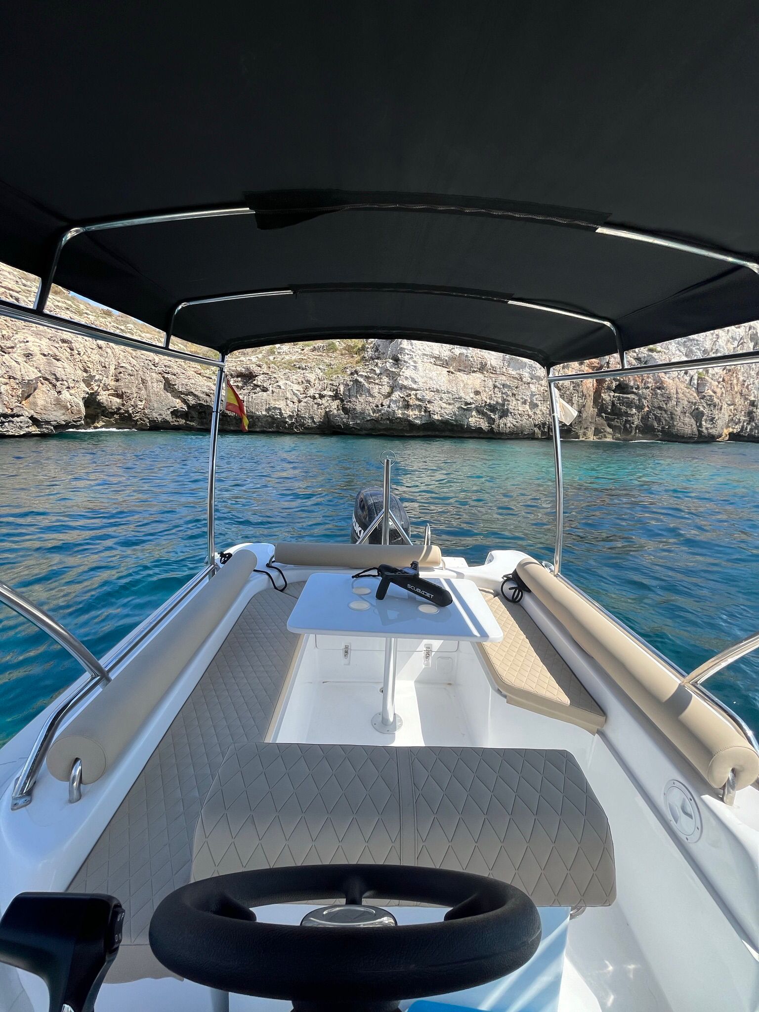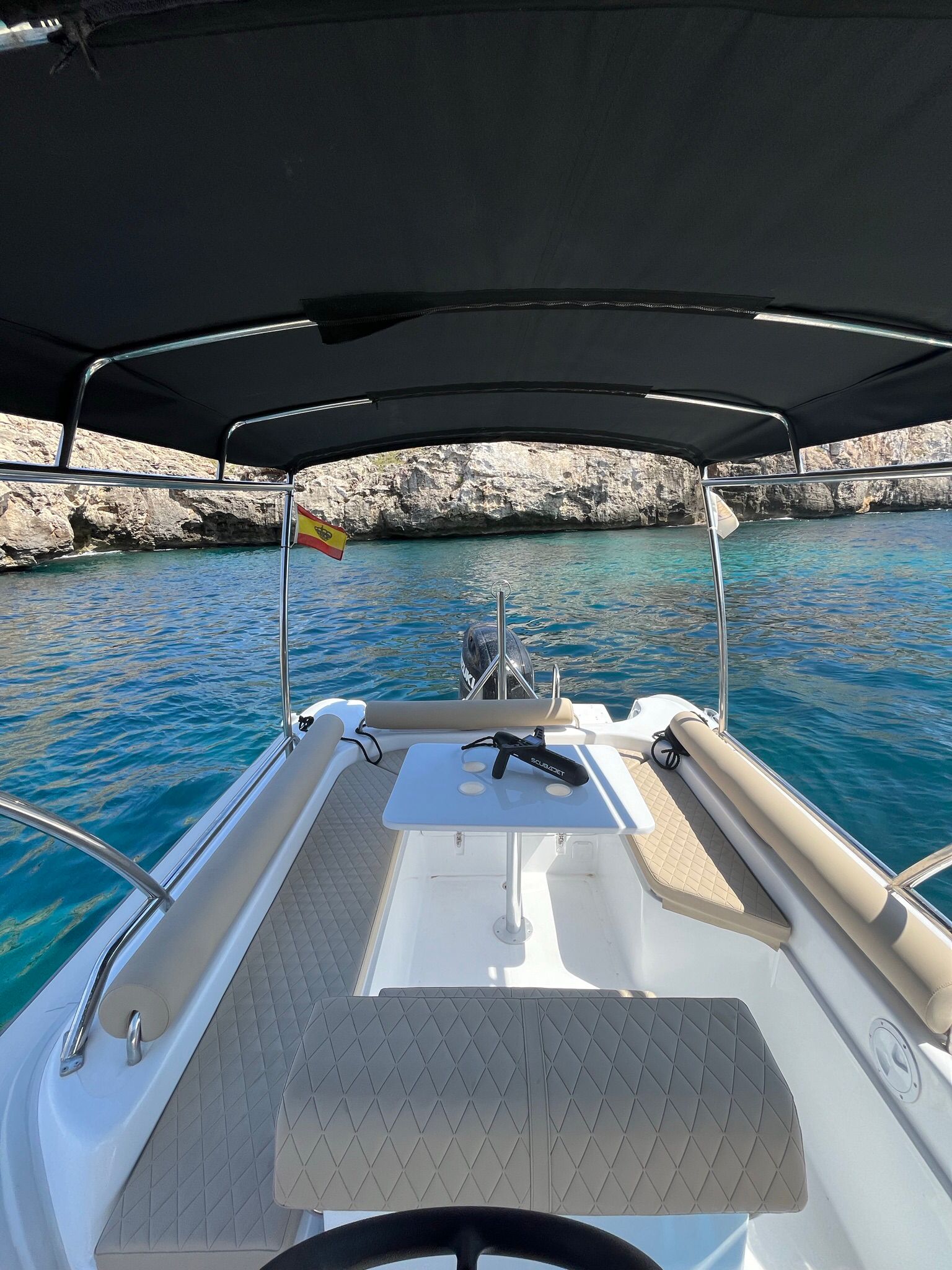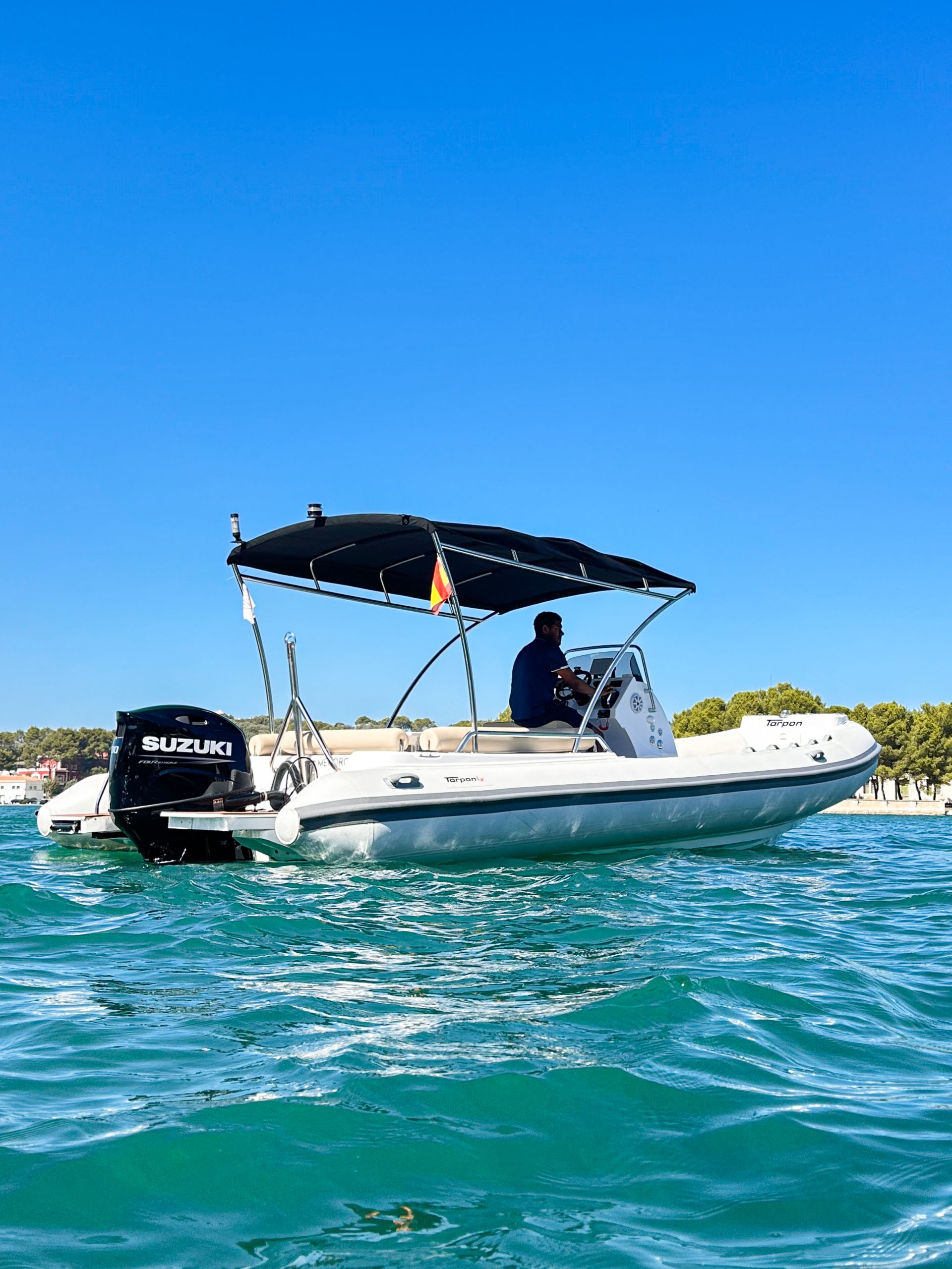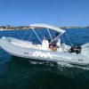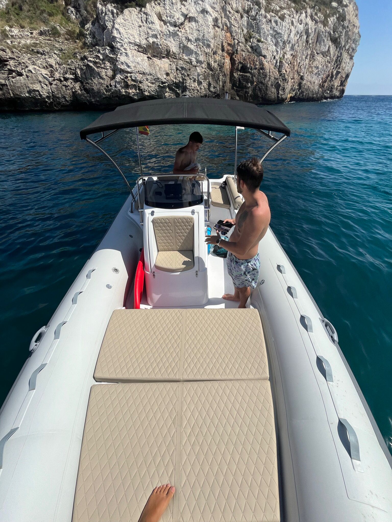 Si estas pensando en comprar una semirrígida de 10 metros con dos motores y cabinada esta NUEVA TARPON 1000 Ccon dos motores es la mejor semirrigida del mercado. El motor Suzuki DF 200 cv., posiblemente el mejor de Suzuki en cuanto a la relacion de potencia/rendimiento/consumo permiten navegar con un mínimo consumo de combustible. La potencia de 2×200 cv permite navegar de forma rápida, ya la vez con un consumo muy reducido comportamiento extraordinario. Además de alcanzar la velocidad de planeo rápidamente y alcanzar mucha velocidad, se comporta fenomenalmente, tanto en giros cerrados como a medio gas sobre las olas. La proa es afilada, es suave y evita el pantoqueo.TARPON 1000 Cabinada trae un un gran solárium de proa 1 metro adicional a la 790, un metro adicional de playa en la popa y 30 cm adicionales de manga, manteniendo la mesa en popa para 8 personas que se convierte en solarium extendido. La zona de popa también se puede convertir en un segundo solárium ajustando la altura de la mesa.En la popa, con un metro de plataforma de baño entre el motor y el barco con dos plataformas laterales adicionales, ducha y escalera; la zona de la bañera, con un sofá envolvente en U, en torno a una mesa que se puede ajustar en altura para formar un espacioso solárium detrás, complementado por un mueble en la zona central con el puesto de gobierno y la proa con el solárium principal. La plataforma adicionales en popa de 1 metro te permite disfrutar como un intraborda. Es destacable la capacidad de estiba en proa y popa, grandes cofres, con una distribución muy equilibrada, aprovechada, hecha para navegar cómodamente a bordo.El puesto de gobierno es cómodo, seguro y ofrece buena protección y ergonomía. La cabina con baño te permite dormir, estibar, sin quitar espacio del solarium gracias a la consola con solo 1,2 m de alta. Esta es una novedad nunca antes visto en una semirrigida . Ante el volante vamos cómodos, tanto de pie como apoyados en el banco con reposapiés y con un panel de control con todos los indicadores. El balón es de material PVC especial que no coge hongos. Sorprende el precio de salida de 120 000 euros incluidos los dos motores, para las primeras 10 unidades